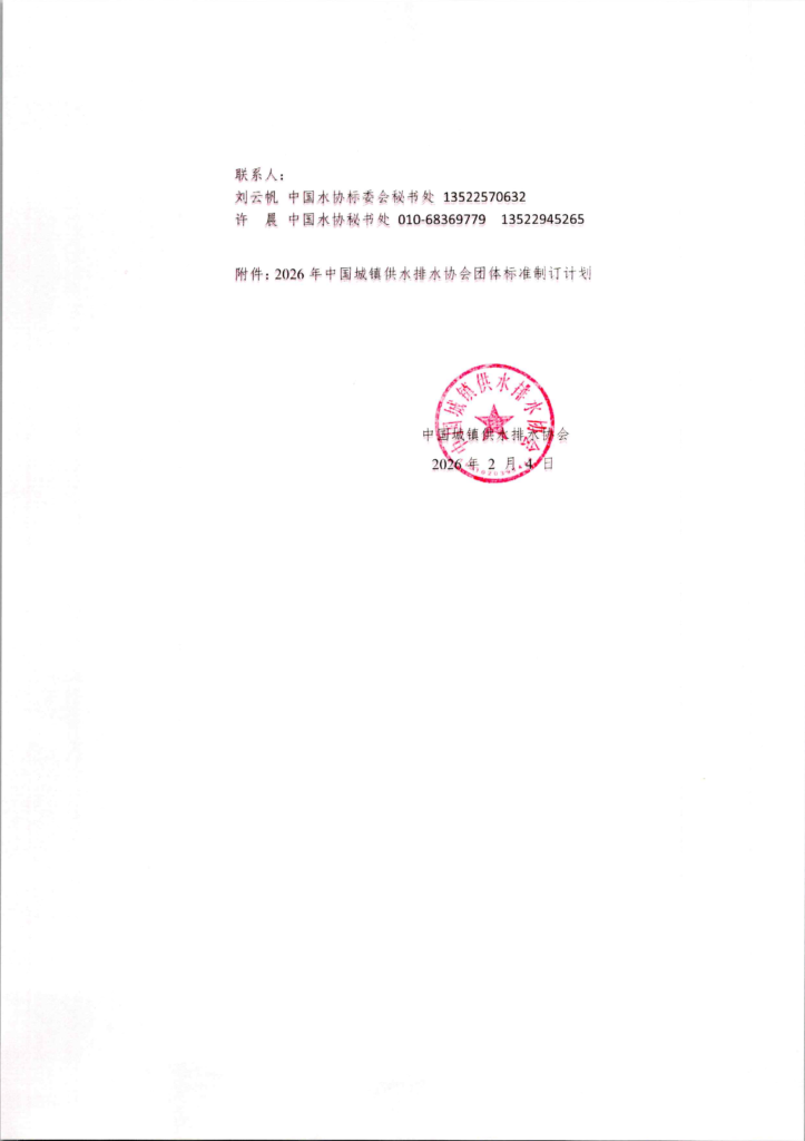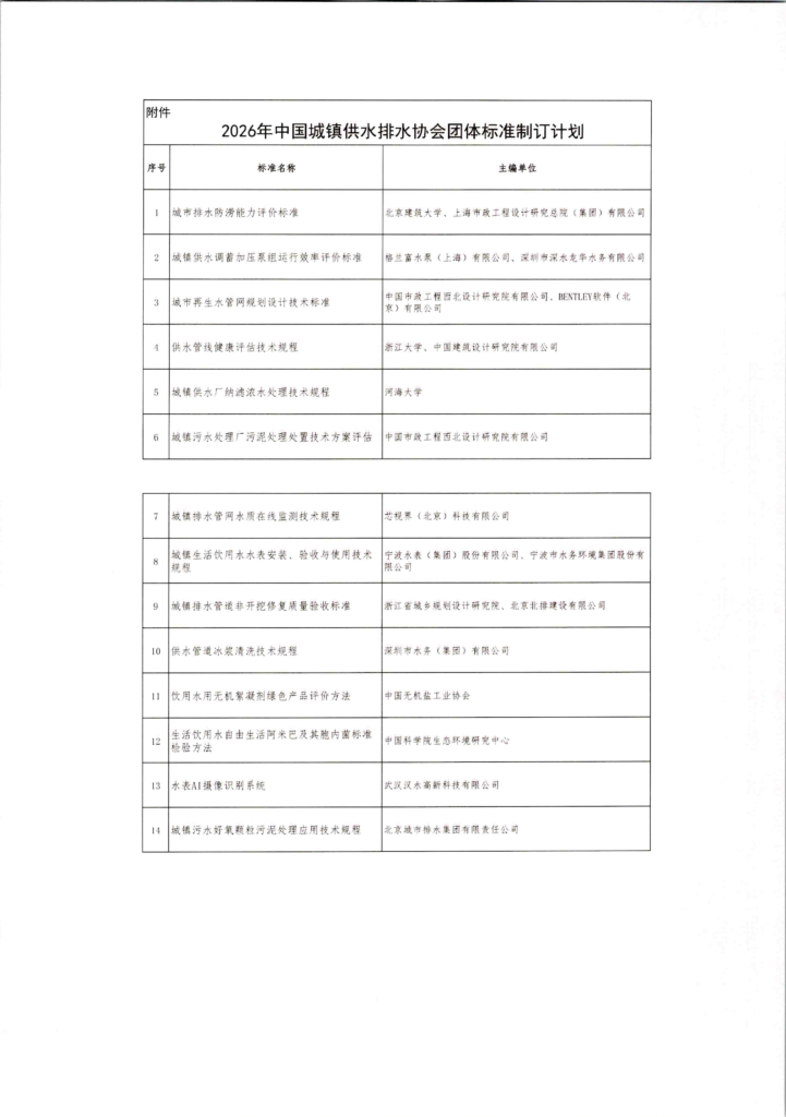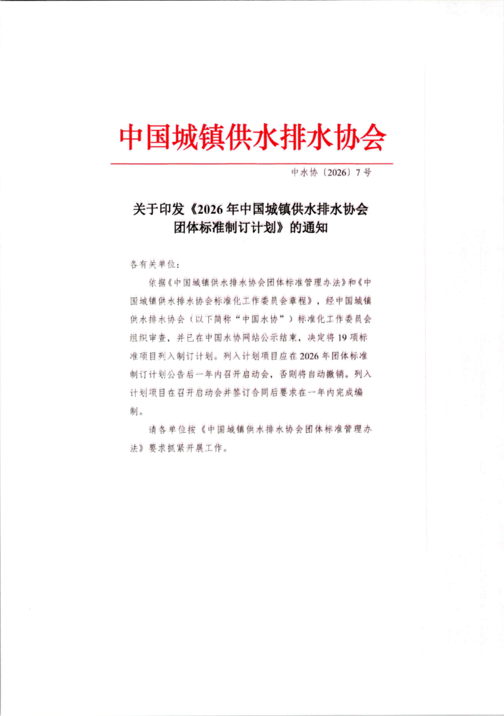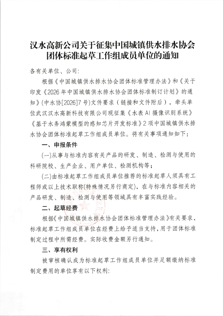 汉水高新公司关于征集中国城镇供水排水协会团体标准起草工作组成员单位的通知